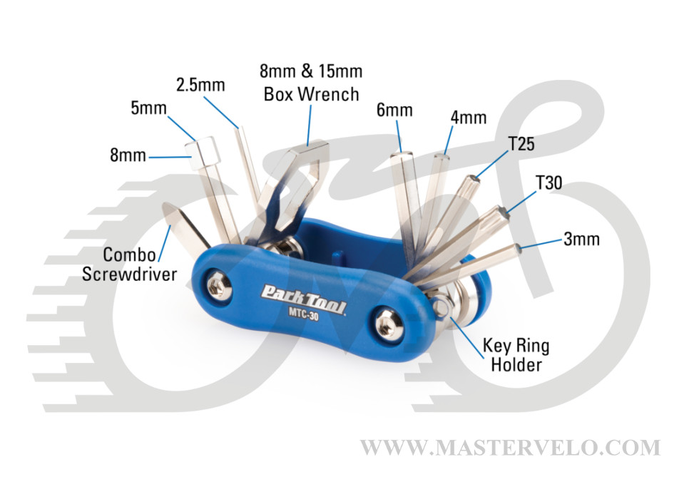 Мультитул Park Tool MT-30 содержит базовые инструменты для ремонта и техобслуживания велосипеда. Компактные размеры позволяют разместить мультитул в любой велосумке.