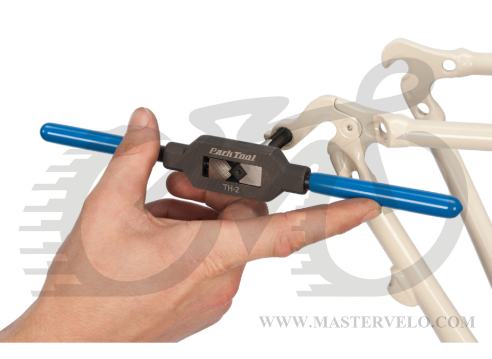 Держатель Park Tool TH-1 для фрез и метчиков используется для нарезки или прогонки испорченных резьб. На краях ручек установлены мягкие противоскользящие накладки для удобства использования.