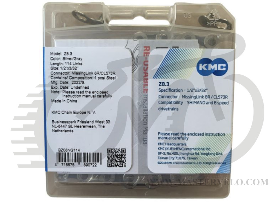 Цепь KMC Z8.3 Silver/Gray 1/2 X 3/32 114 звеньев с замком в боксе