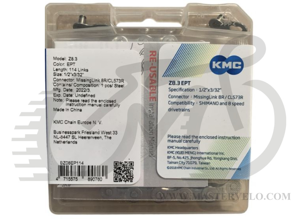 Цепь KMC Z8.3 EPT (антикоррозионная защита) 1/2 X 3/32 114 звеньев с замком в боксе