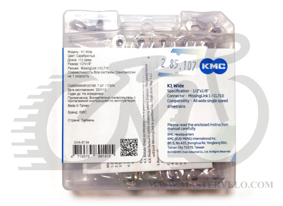 Цепь ВМХ КМС К710 1/2x1/8 - это прочная цепь для сингл-спид, фикс и самая популярная цепь для велосипедов BMX. Особенности: термическая обработка цепи позволяет ей быть более стойкой деформации растяжение, чтобы увеличить срок службы специально усиленна конструкция пинов - прочность на разрыв 1500 Н; конструкция цепи предотваращает случайное ее сбрасывание со звезд; пониженный шум во время работы; внутренние пластины с фасками улучшают стабильность работы цепи. Область применения: Freestyle, Single speed bike, BMX, Fix.