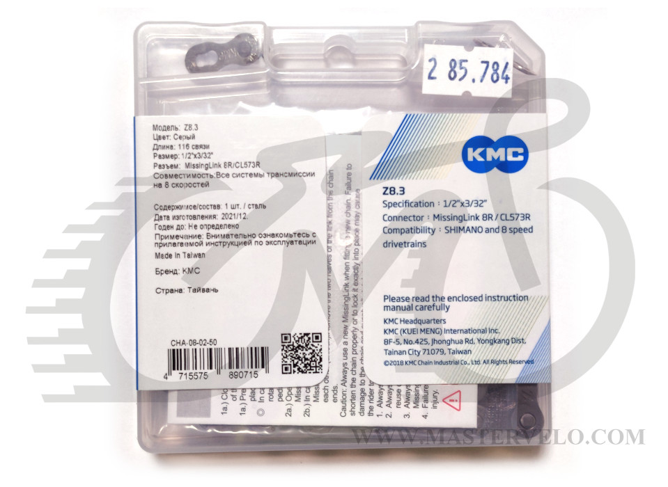 Звенья соединены очень надежно, потому цепь не склонна к разрывам. Кроме того, специальные внутренние пластинки с фасками обеспечивают стабильность детали. Велосипедная цепь KMC Z8.3 не растягивается даже при эксплуатации в агрессивном экстремальном катании. Конструкция детали современная – без втулок. Велосипедная цепь KMC Z8.3 не только износоустойчива, но и щадит остальные детали велосипеда, такие как кассета и звезды шатунов. При соприкосновении с их зубцами цепь излишне не притирается, потому все компоненты остаются неповрежденными.