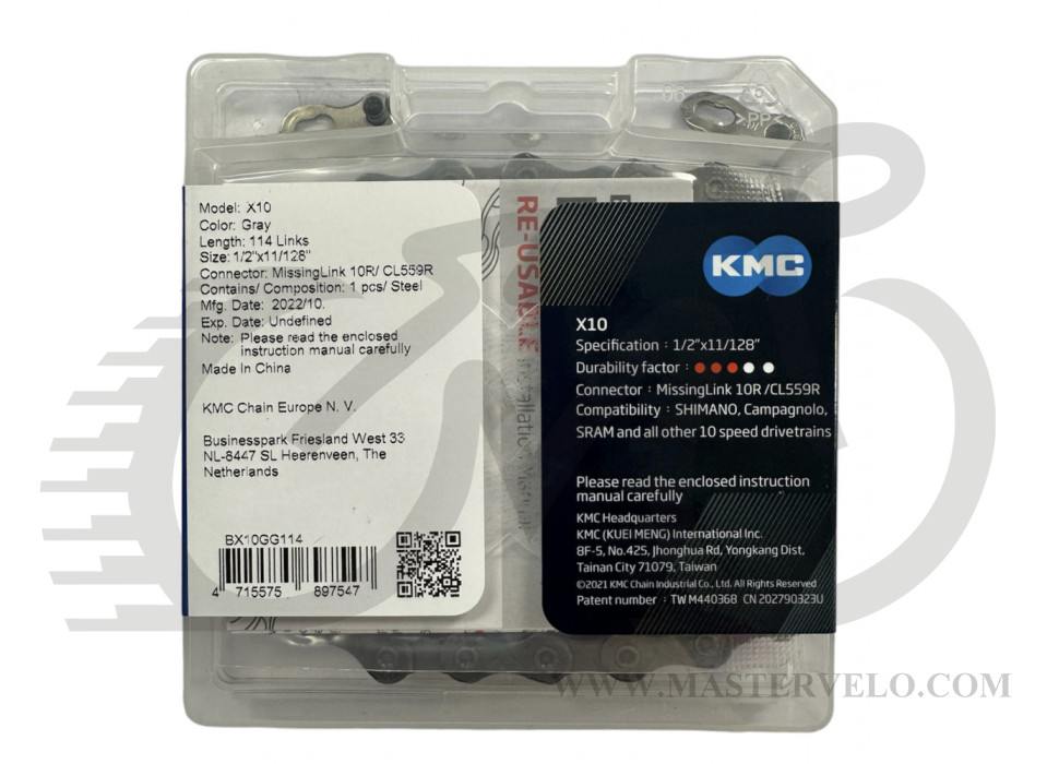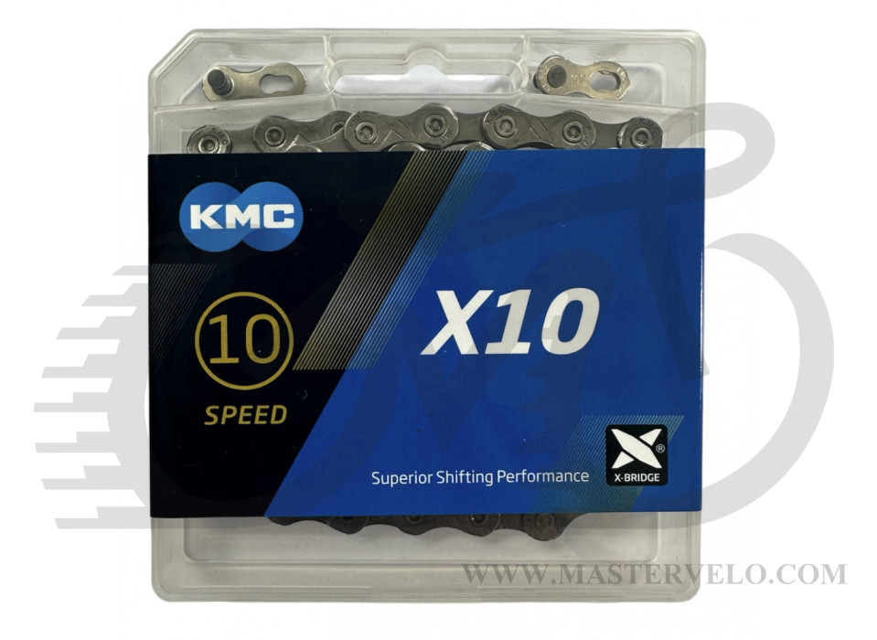 Цепь KMC X10 Gray 1/2 X 11/128 114 звеньев с замком в боксе
