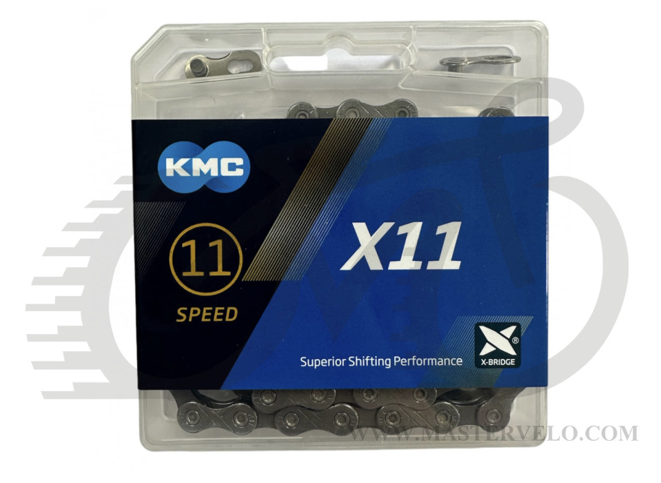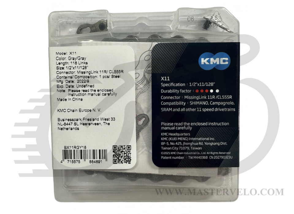 Цепь KMC X11 Gray 1/2 X 11/128 118 звеньев с замком в боксе