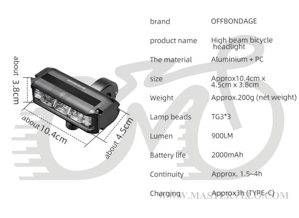 Фара OFFBONDAGE 900 Iumin, 2000mAh, 2 - 4 години