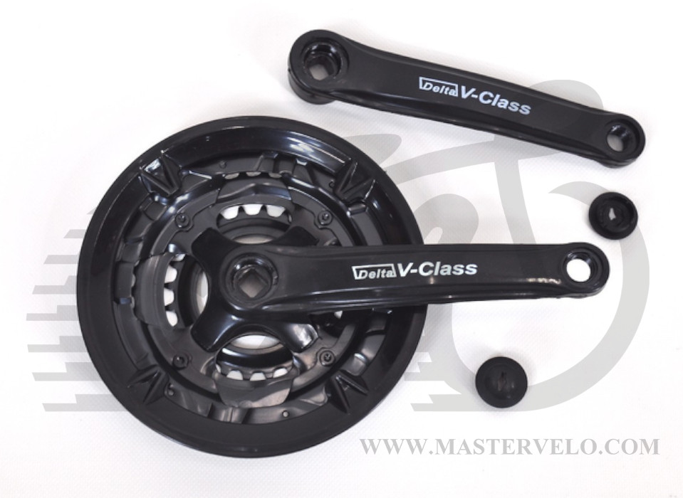 Шатуны V-Class MTB Delta 42/34/24Т, 8/7/6ск. звезды несъемные, L:170мм стальн., с защитой, черн.