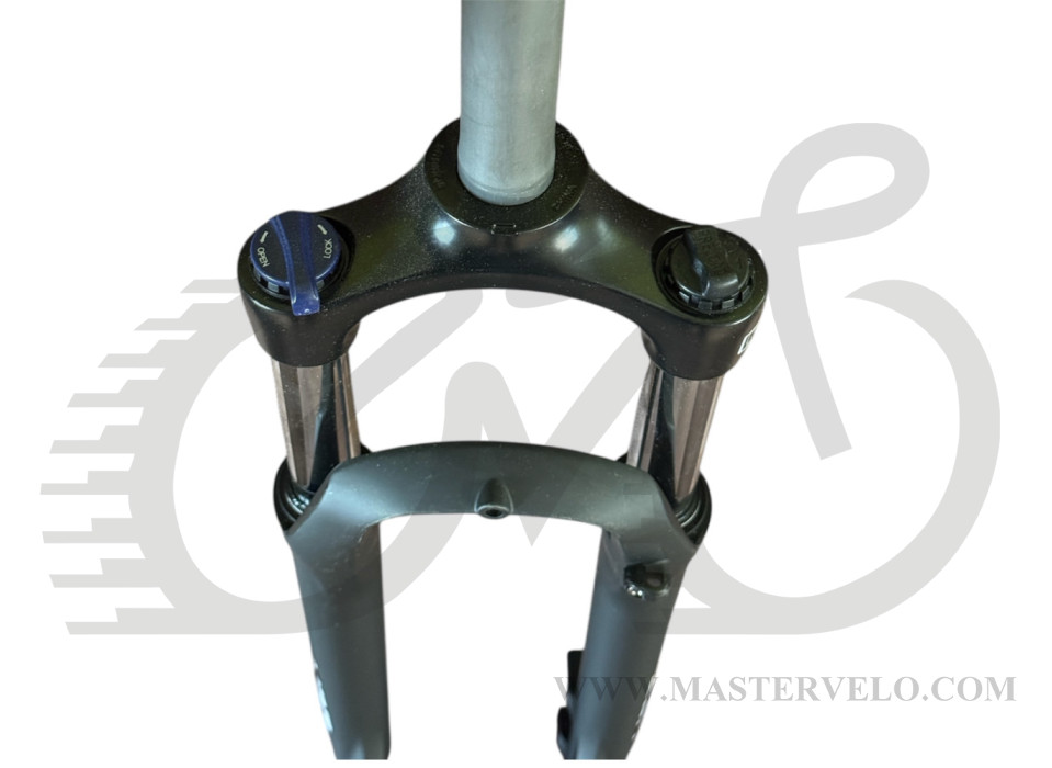 Амортизационная вилка среднего класса с механической регулировкой преднагрузки и гидравлическим картриджем блокировки. Ход вилки 100 мм, под диск. Цвет черный.