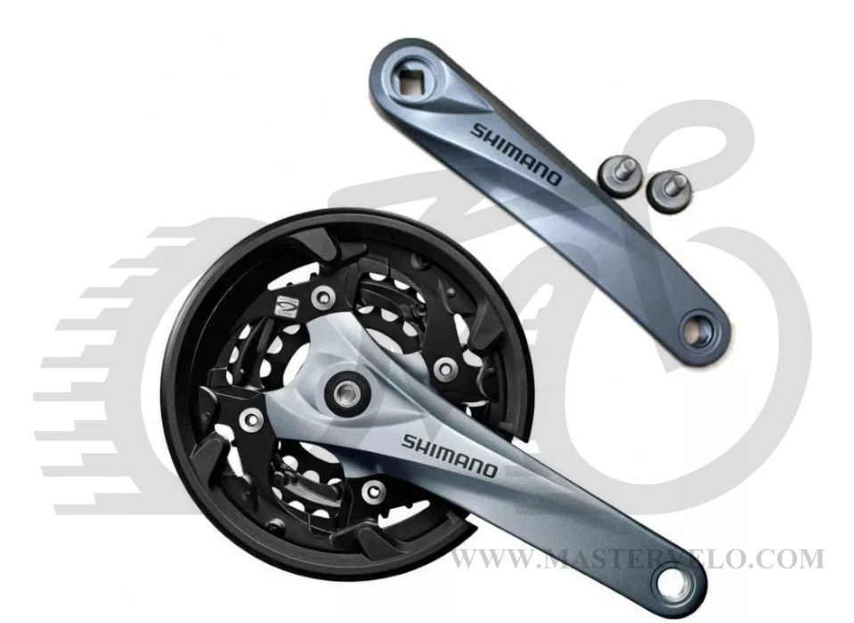 Шатуны Shimano FC-M3000 40/30/22T, 9ск. 175мм, с защитой, с болтами, черные OEM