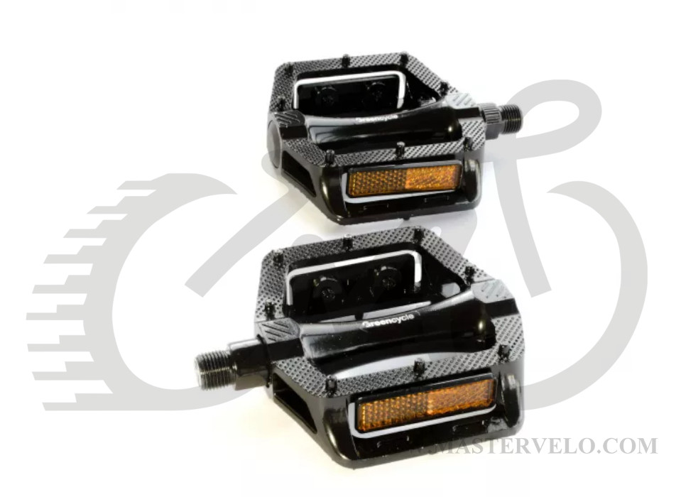 Педали Green Cycle GPD-M304, алюминевые, шариковые подшипники, ось 9/16" бористая сталь (размер 108х105х26) 461 грамм