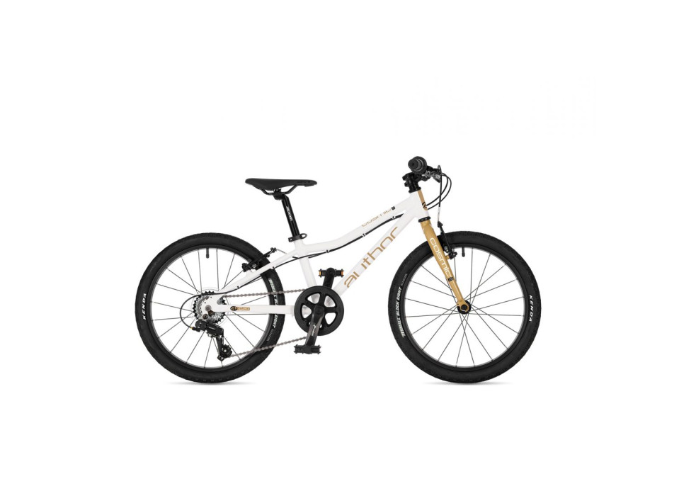 Детская, спортивная модель Cosmic от Author для детей от 6 до 11 лет на алюминиевой раме, переключатель скоростей SHIMANO TY200/манетки REVOSHIFT, 6 скоростей, минимальный рост 115 см - максимальный 135 см. Шины KENDA Small Block Eight 20", вес 8,9 кг.