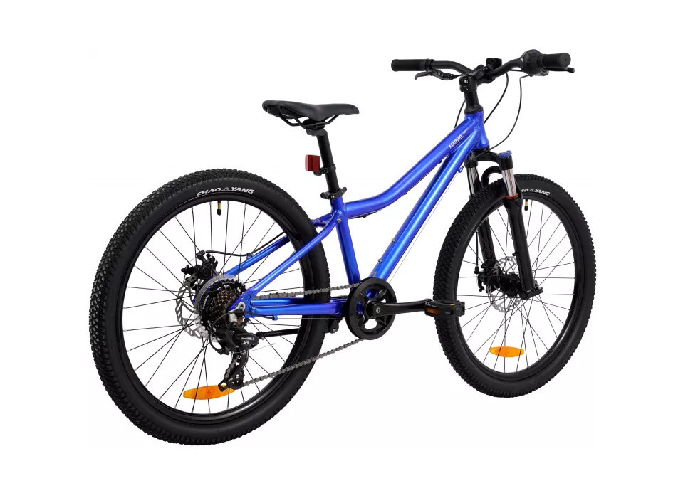 Для того чтобы можно было легко заезжать на холмы или быстро пронестись по двору, велосипед оборудован переключателем на 7 скоростей от японского производителя Shimano, а безопасную остановку обеспечат механические дисковые тормоза. Плюсом таких тормозов является простота обслуживания, не требующая специального инструмента, и уверенная работа при дождливой погоде или при гнутом восьмёркой колесе, чем не могут похвастать ободные тормоза.