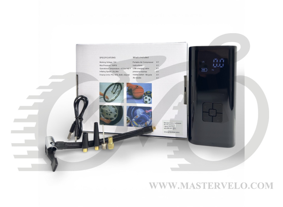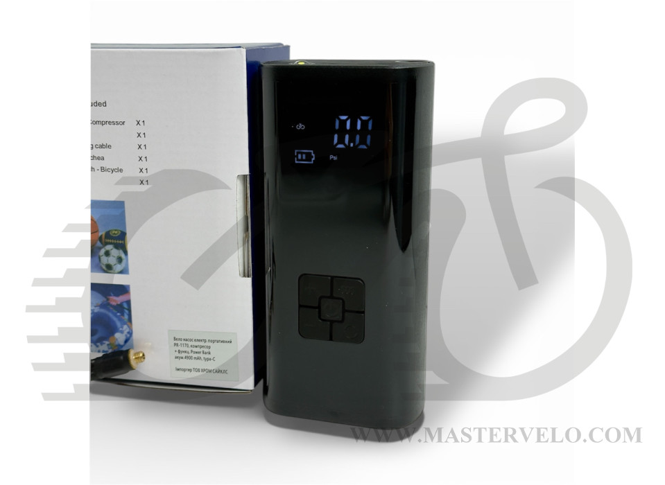 Вело насос электрический портативный PR-1170, компрессор+ функц. Power Bank акум.4900 mAh, type-C