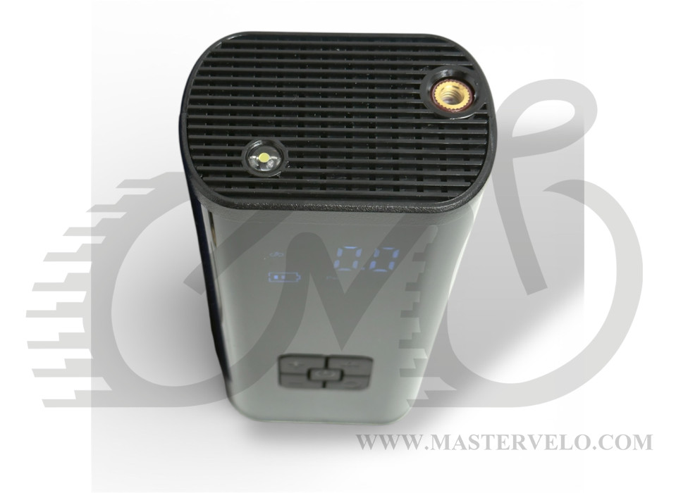 Портативный электрический компрессор для закачки велосипедных и автомобильных шин, а также мячей и надувных изделий. Компактный формат удобен для хранения в авто или мастерской. Сочетает функции компрессора и Power Bank.