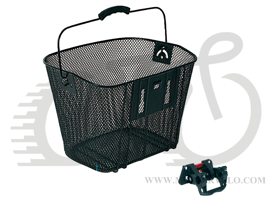Металлическая корзинка с ручкой и надежным и быстросъемным креплением на руль предназначена для поездок в магазин и недлительных поездок по городу.
