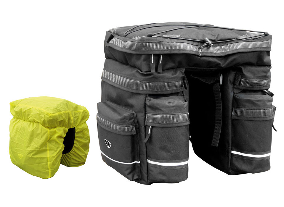 Три отделения, светоотражающие полоски, много боковых карманов, эластичная утяжка сверху