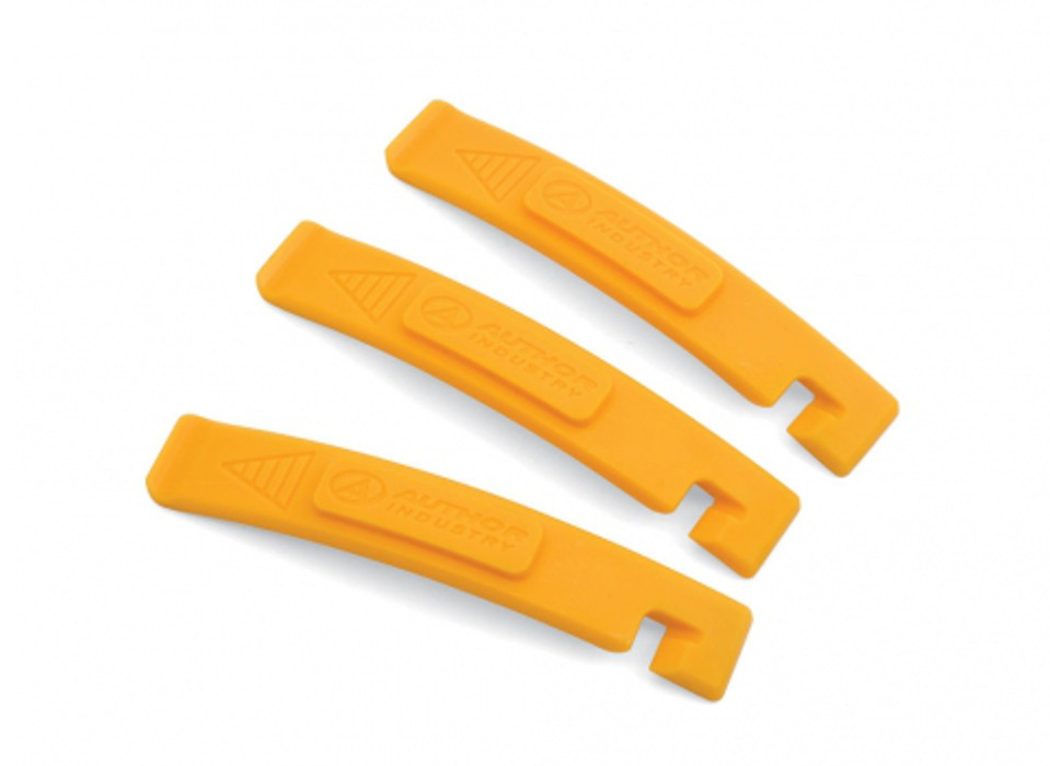 Бортировочные лопатки AHT-07 для монтажа и демонтажа покрышек, выполнены из упругого желтого пластика, вес 40 грамм