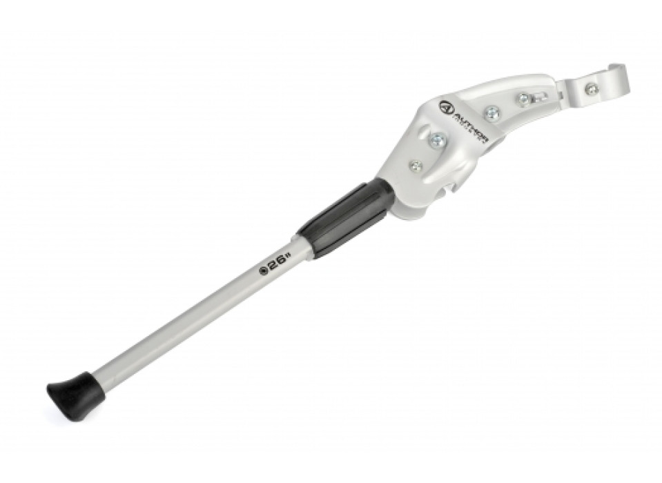 Подножка AKS-40-26" предназначена только для велосипедов с размером колес 26", устанавливается на задний треугольник рамы, может использоваться для велосипедов с дисковыми тормозами, имеет универсальное крепление, изготовлена из алюминия AL6061, матово серебристая.