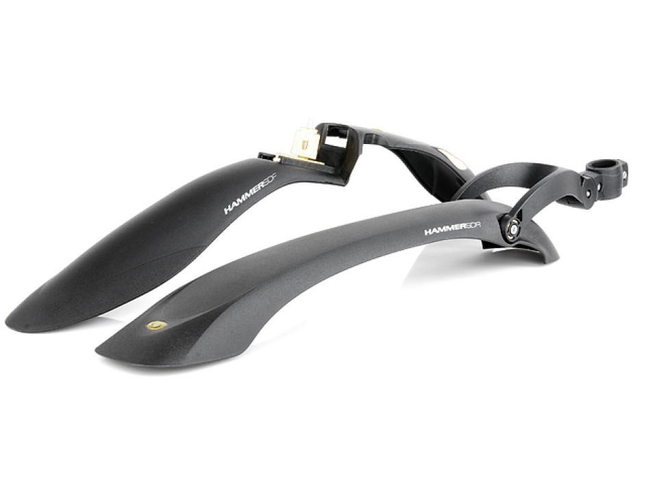 Универсальный набор легких быстросъемных крыльев SIMPLA HAMMER. Рассчитаны для езды в экстремальных условиях. Легко настраиваются под каждый велосипед с помощью шестигранника. Под диаметр колес 24-29". Переднее крыло крепится в шток вилки, заднее крыло - на подседельный штырь с помощью зажима на болтах.