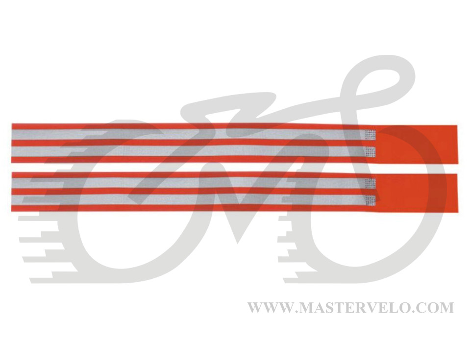 Ленты-хомуты на липучке, со светоотражающими полосами, предотвращающие попадание штанин в трансмиссию велосипеда.