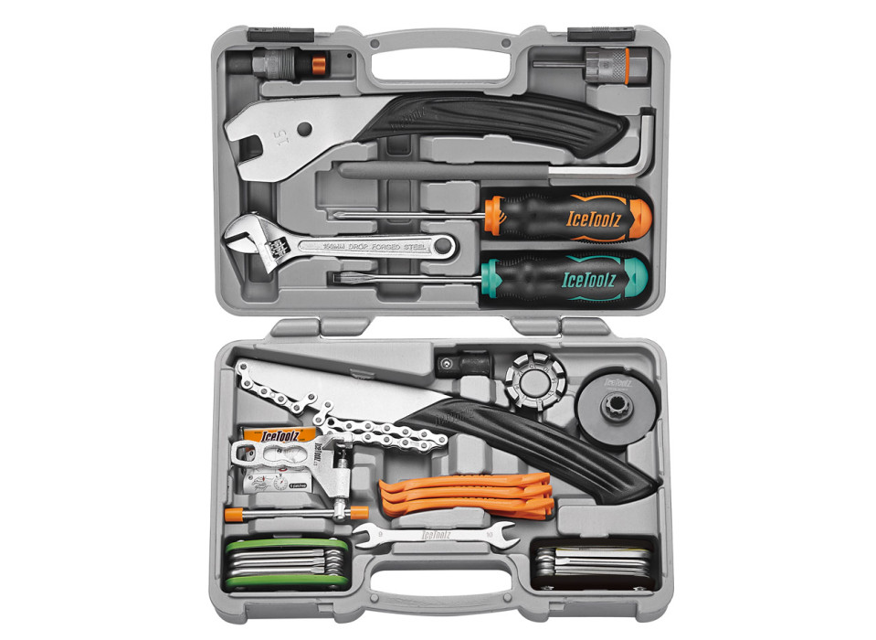 Этот чемодан с велосипедными инструментами содержит сбалансированный набор для самостоятельного ремонта или апрейда байка в домашних условиях. Если вы решили купить такой кейс - то экономите немалую сумму и кучу времени, по сравнению с покупкой всего этого инструмента по отдельности. Набор содержит все необходимое для замены и апгрейда кассет, шатунов, кареток, цепей, камер, покрышек, и регулировки всех узлов и систем велосипеда.