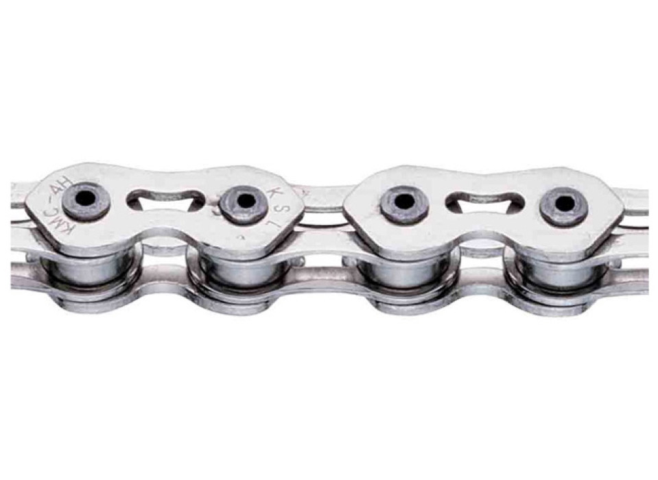 Облегченная цепь для сингл-спид. Очень популярная цепь для велосипедов БМХ. Особенности: облегченная (полые пины и перфорироанные звенья); обработка, противостоящая растягиванию; специальная усиленная конструкция пинов; увеличенный срок службы; конструкция предотвращающая сбрасывания со звезд; пониженный шум; внутренние пластинки с фасками улучшают стабильность цепи. Область применения: Freestyle, Anti-Drop series, Beach Cruiser, Single Speed Bike, BMX. Стандарт: 1/2" x 1/8". Количество звеньев: 110. Цвет: серебристый.