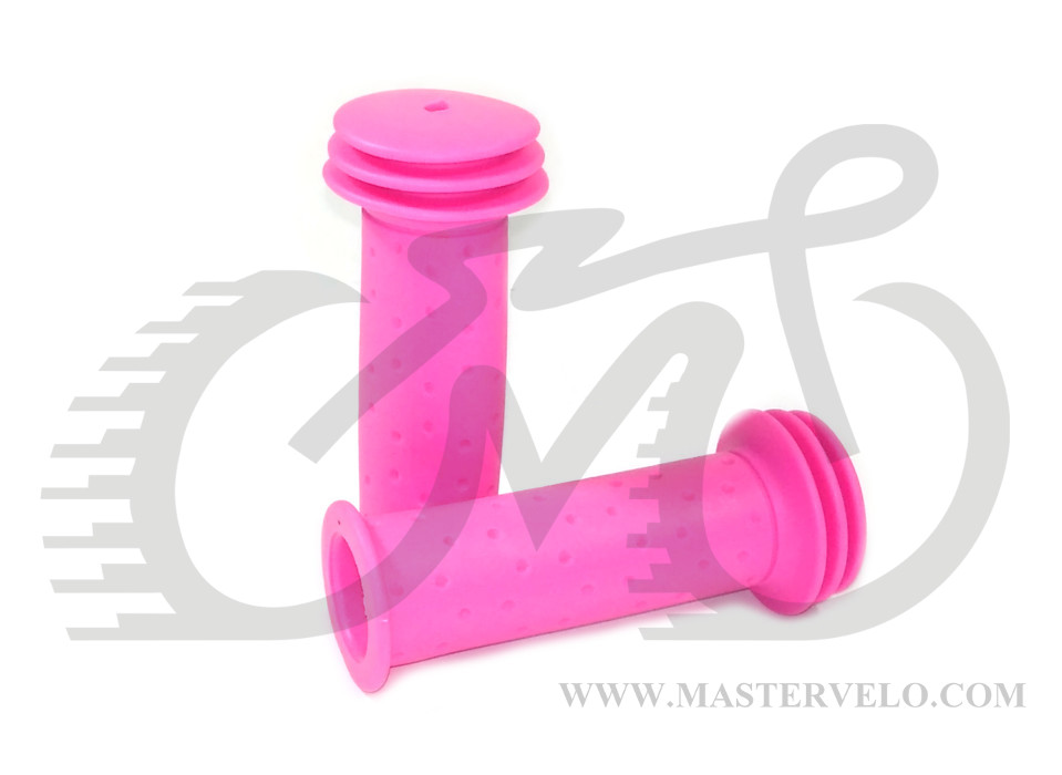 Яркие и мягкие грипсы для детских велосипедов. Резиновое покрытие обеспечивает надежную хватку и препятствует прокручиванию на руле.