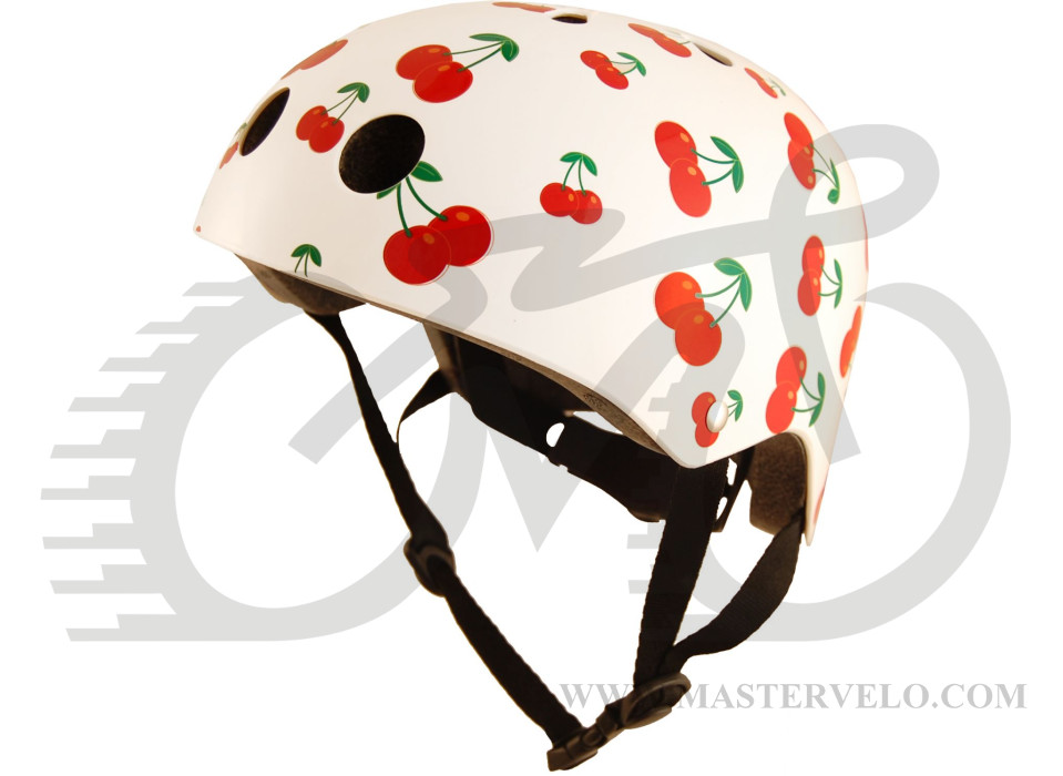 Шлем детский Kiddi Moto белый с вишенками, размер S 48-53см