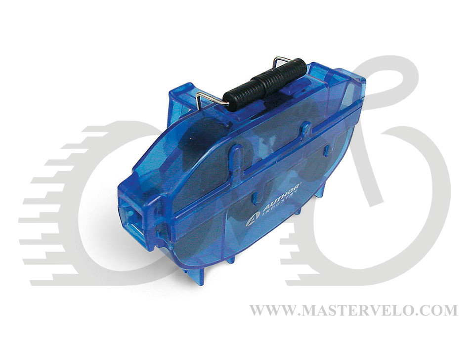 Эфективное устройство для очистки цепи AHT-710 с четырех сторонними щетками скребка, выполнено из прозрачного голубого пластика, вес 272 грамм