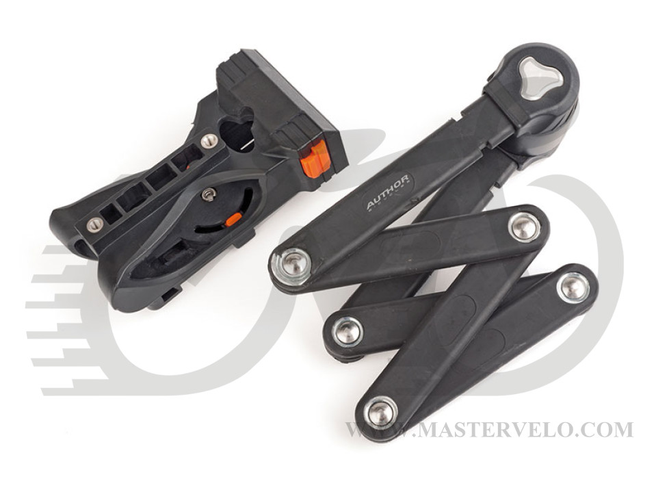 Замок AUL FlexGuard - складной, рабочая длина захвата 290 мм позволяет надежно соединить велосипед с парковочным местом. В комплекте крепление для перевозки на велосипеде. Вес 930 грамм.