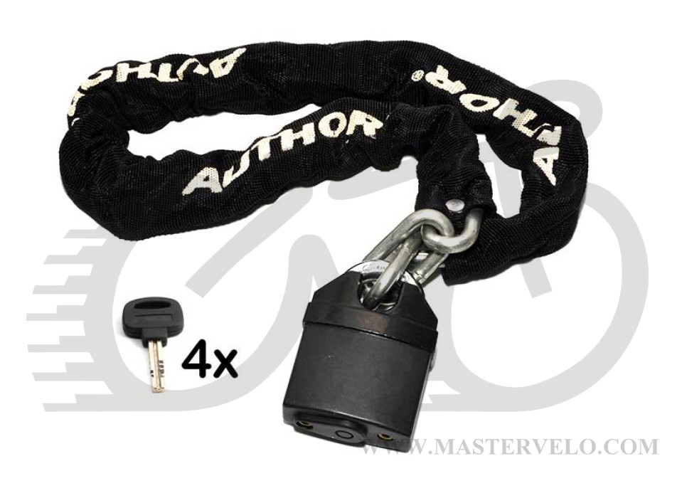 Замок усиленный ASL-65 8 x 900 закрывается на ключ с мощным навесным замком,стальная цепь оригинальной квадратной конструкции 8мм на 8 мм и длиной 900 мм.В комплекте 4 ключа.
