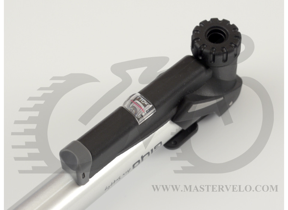 Откидная Т-образная ручка обеспечивает удобный хват при накачивании и позволяет прилагать большее усилие, а благодаря встроенному манометру вы сможете легко контролировать давление в покрышках даже в полевых условиях