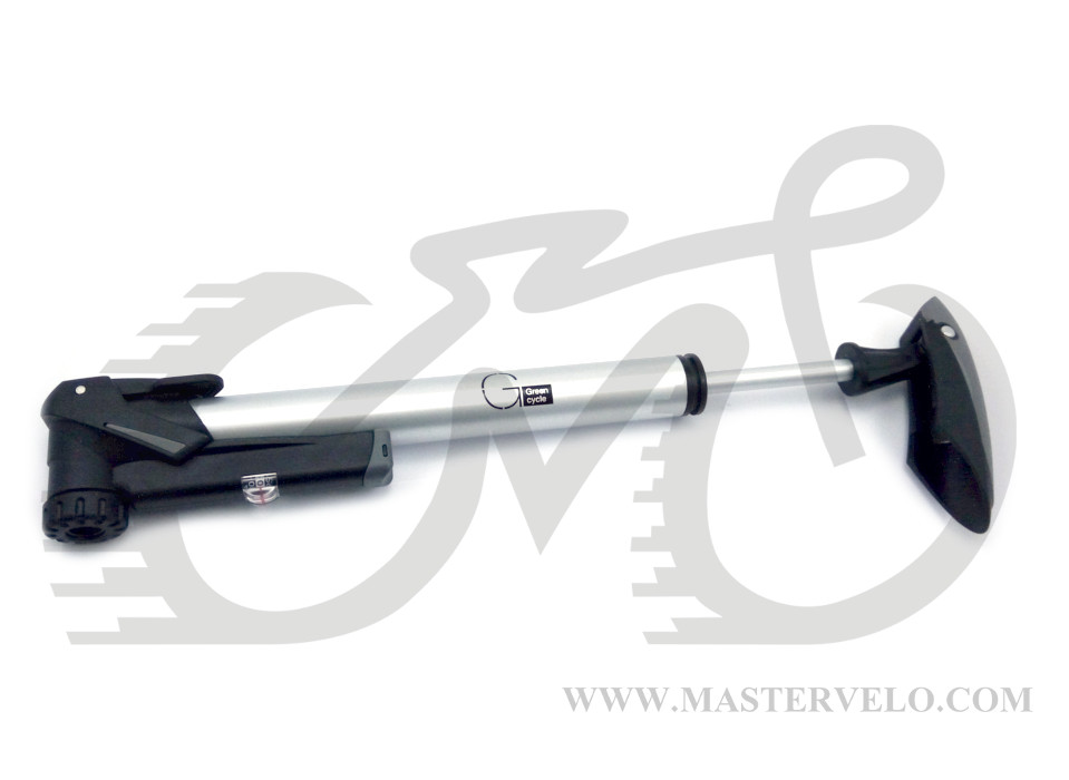 Мининасос Green Cycle gp-94 Т-ручка, алюминиевый с манометром, двусторонний, 100psi, Presta+Schreder, серебристый