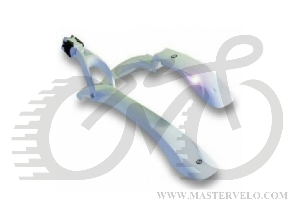 Производитель: SIMPLA. Универсальные быстросъемные крылья от польского производителя. Данный комплект крыльев предназначен для велосипедов с диаметром колес 24-29". Оснащены универсальным типом крепления, которые обеспечивают широкий грязевой зазор, что в свою очередь позволяет использовать эти крылья на всех моделях горных велосипедов. Переднее крыло крепится в шток вилки, при помощи спец зажима, заднее устанавливается на подседельный штырь, и имеет два шарнира для регулировки углов наклона.