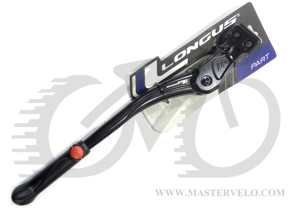 Усиленная подножка, может использоваться для электровелосипедов, имеет функцию изменения длины и предназначена для велосипедов с размерами колес 24-28", может использоваться для велосипедов с дисковыми тормозами, изготовлена из алюминия, черная.