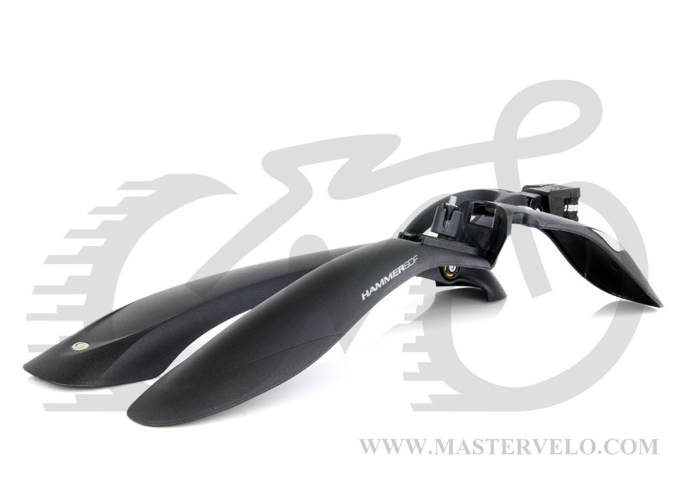 Универсальный набор легких быстросъемных крыльев SIMPLA HAMMER 2. Рассчитаны для езды в экстремальных условиях. Легко настраиваются под каждый велосипед. Под диаметр колес 24-28". Переднее крыло крепится в шток вилки, заднее крыло - на подседельный штырь с помощью эксцентрика.