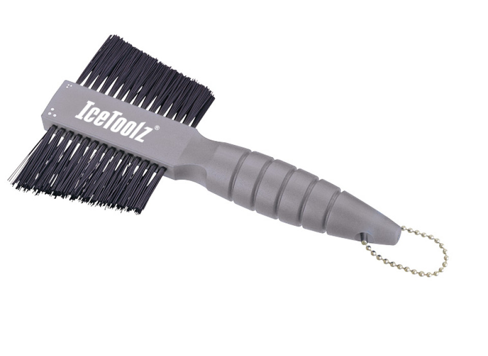 Щётка двухсторонняя, имеет мягкие и жесткие щетины для деликатной и агрессивной чистки соответственно.