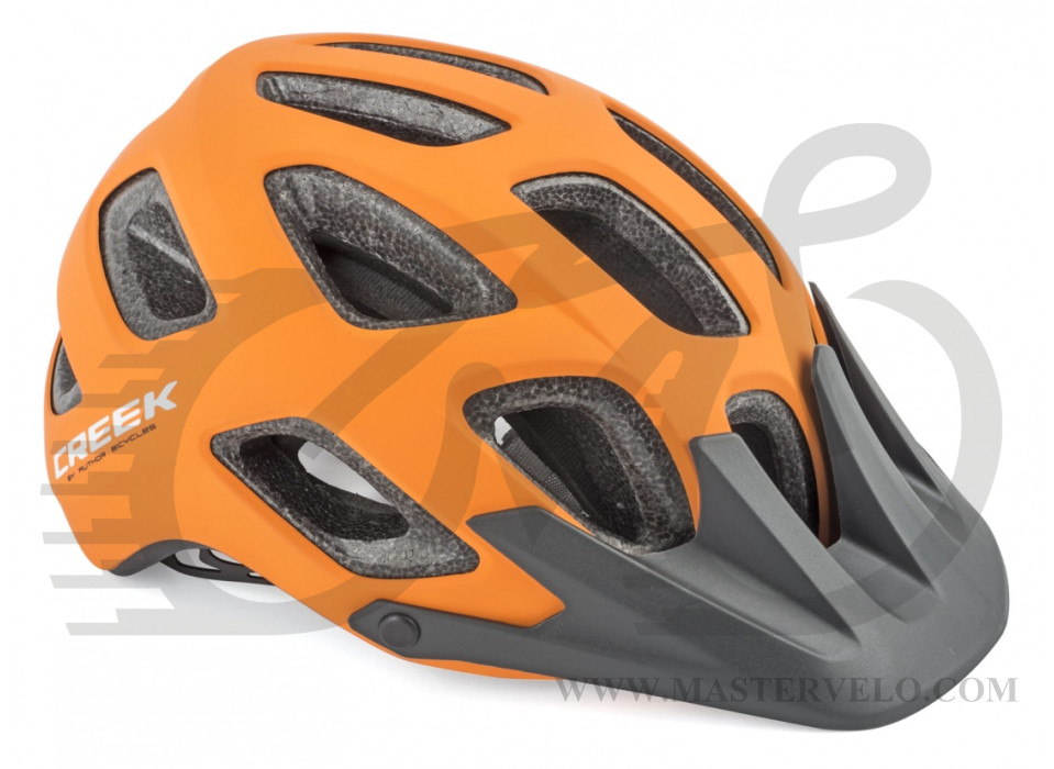 Легкий велосипедный шлем AUTHOR Creek со съемным козырьком. AUTHOR DialFit система крепления. Жесткий корпус выполнен из ABS материала, заполненный наплонителем EPS. Передние отверстия защищены сеткой от насекомых. Антибактериальные вставки.