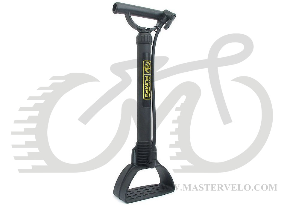 Насос напольный F04 с шлангом, корпус насоса пластиковый с платформой для удерживания насоса ногой при накачке, с приспосабливаемой головкой под все виды AV / FV / DV вентилей с рычагом фиксации для жесткого крепления к вентилю, черный, вес 430 гр.