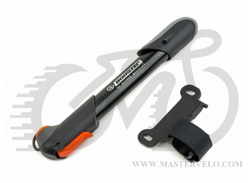 Насос мини ручной AAP Booster телескопический, с приспосабливаемой головкой под все виды AV / FV / DV вентилей с клапаном предохраняющим отверстие от загрязнения, серебристо-черный, в комплекте крепление к раме с контрольной крепежной лентой, корпус: алюминий AL6061, диаметр насоса 29 мм, длина 205 мм, вес 116 грамм.