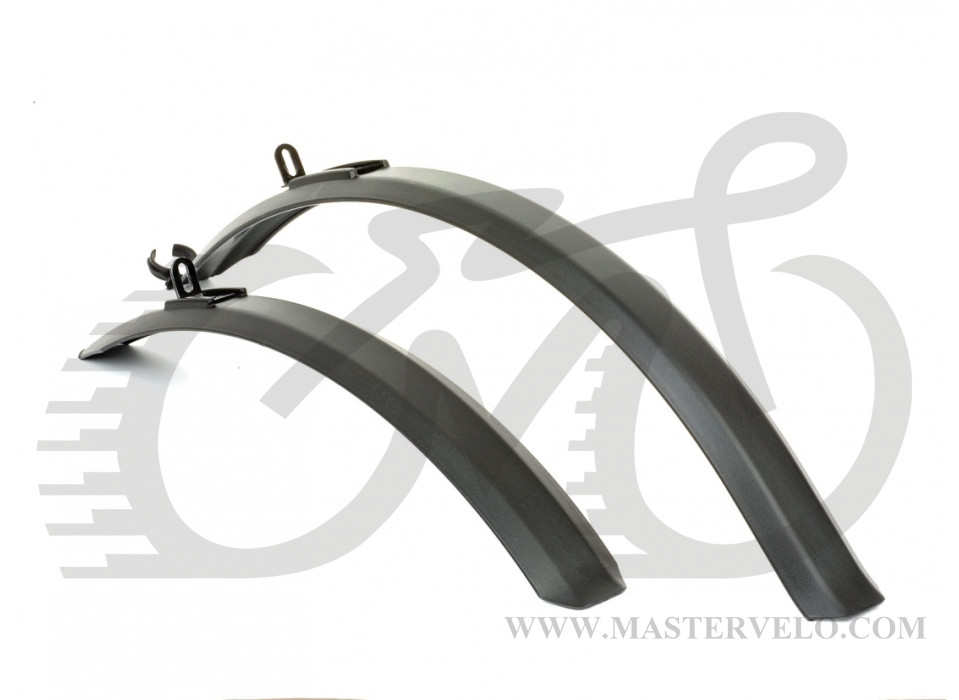 Набор подвесных крыльев Author AXP-07 для установки на велосипеды c V-brake и дисковыми тормозами, с размерами колес Mtb 29” и Mtb 27,5” а также 28 дюйм(Cross 700C). Ширина крыльев 60 см . Материал: пластмасса и стальные скобки. Цвет : черные. Вес 296 грамм.