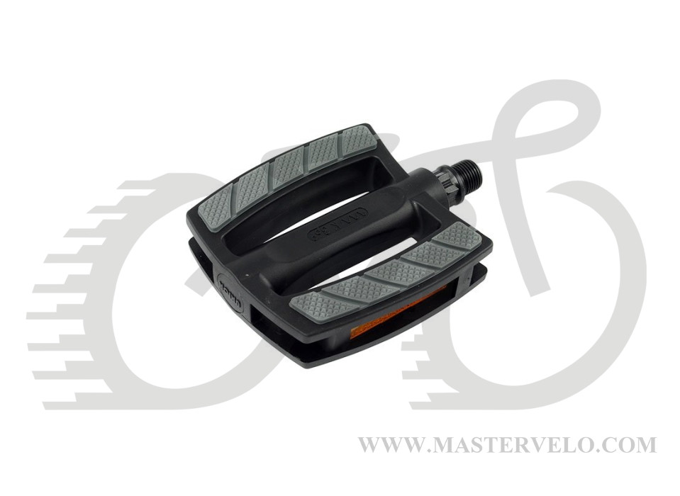 Калена вісь, розміром 9/16 ". Контактна поверхня педалей має стійку до ковзання термопластичну гумову підкладку та відбивачами, встановленими з обох боків.