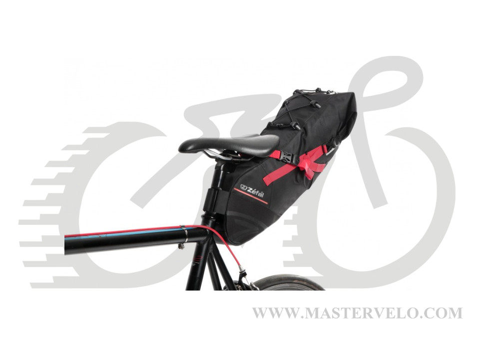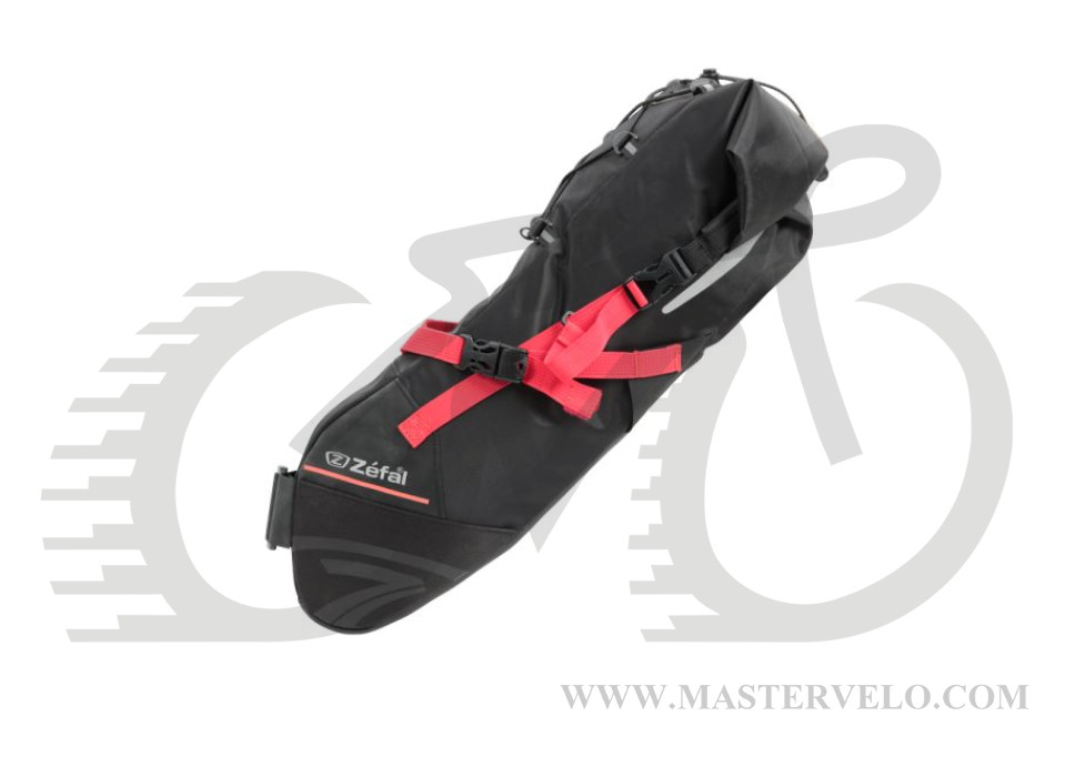 Сумка крепится прочными ремнями к рейлам седла и к подседельной трубе для оптимального распределения веса на велосипеде.